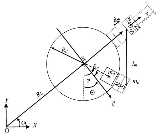 The schematic model of the PEH part is illustrated in Figure 3. Three coordinate systems are defined in this figure: A global coordinate system (X,Y) at the blade center, and two local coordinate systems fixed on the blade: (1) (ξ,η) at the disk center, and (2) (z,v) at the fixed end of the PEH beam.