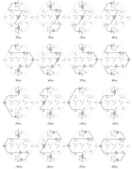 - Babaei, E.; Kangarlu, M.F.; Sabahi, M. Extended multilevel converters: An attempt to reduce the number of independent DC voltage sources in cascaded multilevel converters. IET Power Electron. 2014, 7, 157–166. [Google Scholar] [CrossRef]