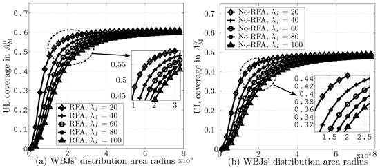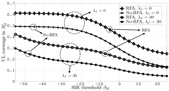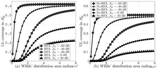 3.1. UL Coverage Probability with WBJs and Without RFA Employment