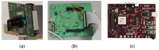 Hardware platforms: (a) DVS128_PAER retina; (b) USB-AERmini2 monitoring board; (c) Virtex-5 field-programable gate array (FPGA) evaluation board.