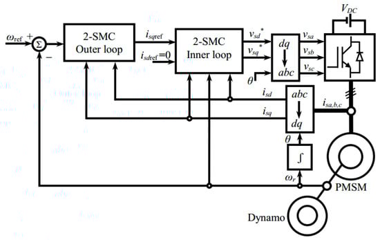 The second-order SMC is developed using the motion equation. The control system provides the q-axis current as a reference for the inner loop in order to track the desired speed reference.