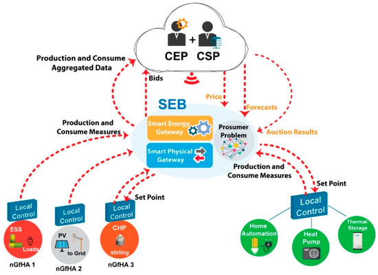At the local level, each Power Cloud user is equipped with a SEB, which enables the interaction with the cloud level. The SEB implements the prosumer problem, as presented in [26], and provides the control commands to the nGfHA and to the home automation system, when it exists.