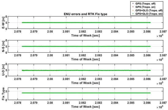 4.4.3. Scenario III: RTK Performance of Different Constellations with Tropospheric Effects