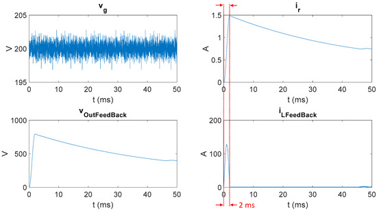 Inputs and feedback signal waveforms with initial conditions vout = 400 V and iL = 0.