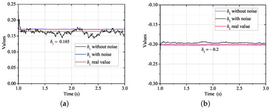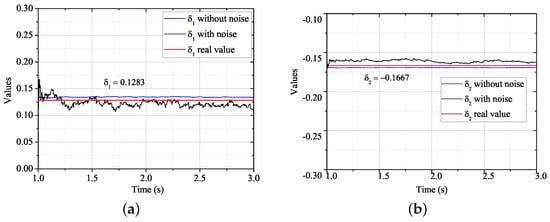 Figure 16a,b presents the identification process of Case 2. The ideal results also show an opposite steady-state error because of the deviation of