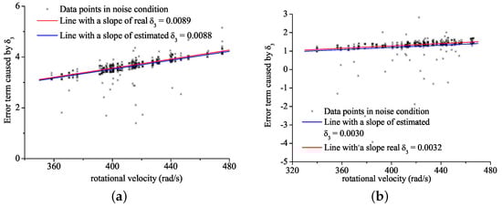 and are the maximum and minimum value of identification during an interval with enough length. can reflect the fluctuation amplitude of online identifying results. After acquiring estimated and , the third error term can be derived by real-time information of q-axis current equation. Our strategy is to command the angular velocity of rotor in a constant values; choose the effective q-axis data by a similar selector ;, and then online analyze the proportional relation between the error term result from and in a linear regression technique. The ratio is the estimated value of .