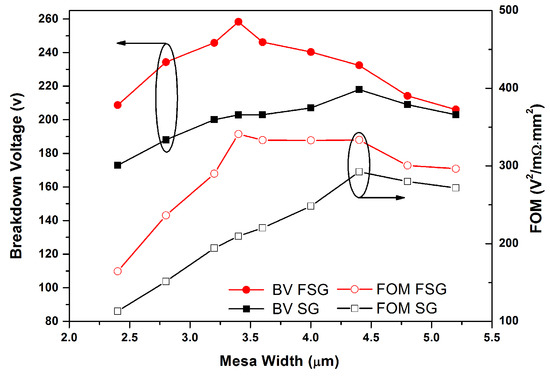 Dependence of BV and FOM on the mesa width.