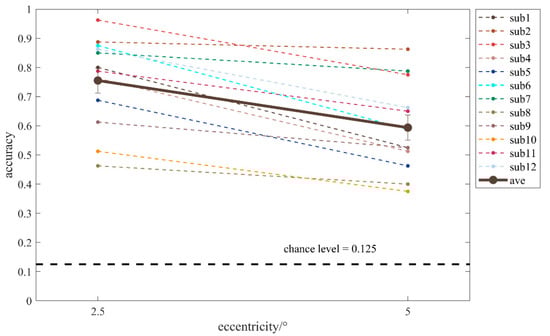 The 8-direction classification accuracies at the eccentricity of 2.5° and 5° are shown in