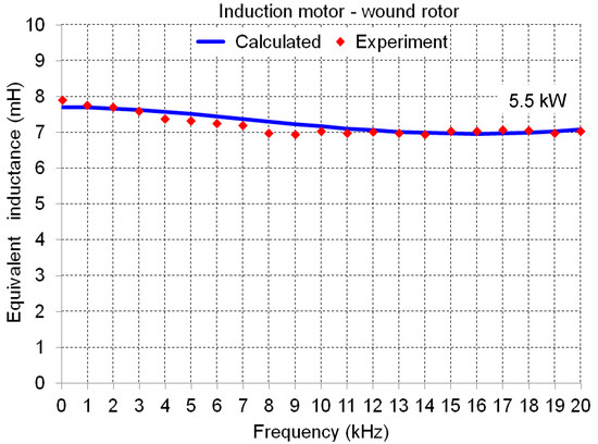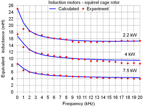 The equivalent inductance, experimentally determined by the procedure described above, was compared with the value calculated by the proposed method (4), considering the motors’ parameters given in Table 4. The results show an acceptable agreement in the whole considered frequency range from 1 kHz to 20 kHz.