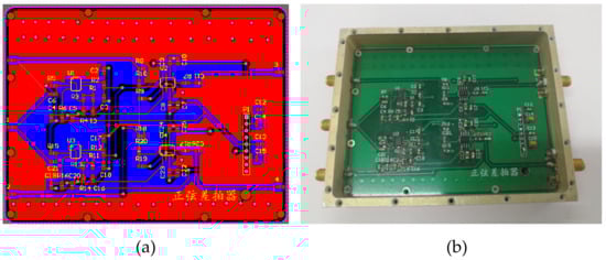 Photograph of the frequency down-beater. (a) PCB photograph; (b) Physical photograph.