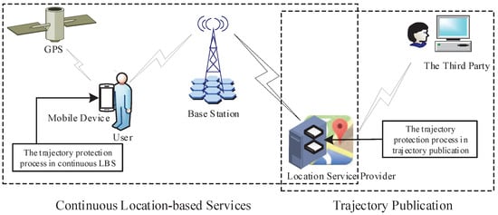 The flowchart of these two trajectory protection processes in continuous LBS and trajectory publication is shown in Figure 4.