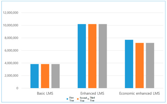 The costs involved in constructing a VOD system for the lectures and linking the LMS system with learners’ smart devices which allows them to participate in distance learning. These have been included in the total cost along with the software (customized) development cost, all of which are based on the expected price and labor wage index of 2018, as well as depreciation costs. The definition of the respective costs involved in developing individual functions are as follows: