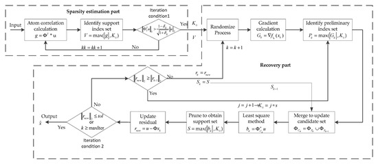 Therefore, we proposed an adjustment strategy for the sparsity estimation to control the convergence conditions of the recovery algorithm and adjust the estimated sparsity . This strategy is described below.