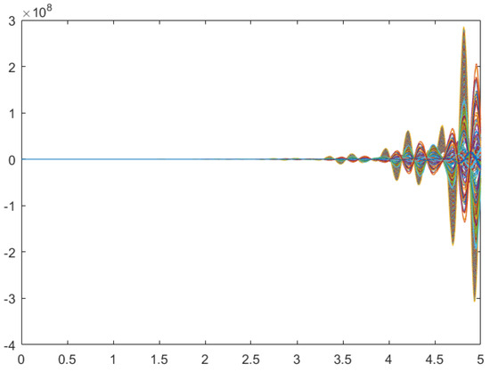 If the time-delay term of the controller (30) is removed, that is , the state trajectories of the stochastic energy-storing circuit with time delay are impossible to converge to zero when which is shown in Figure 10. Hence, our given results are correct and the proposed controller is effective.
