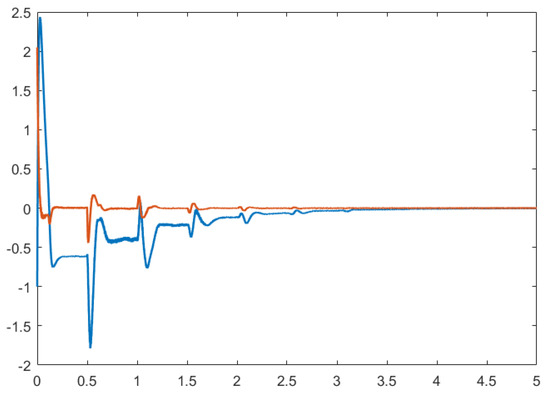 In order to break the Lipschitz condition, the parameter α is defined in . On the contrary, when or , there exists a unique solution for the systems, which contradicts the definition of finite-time stability. Therefore, the parameter α must be in .