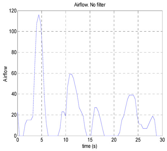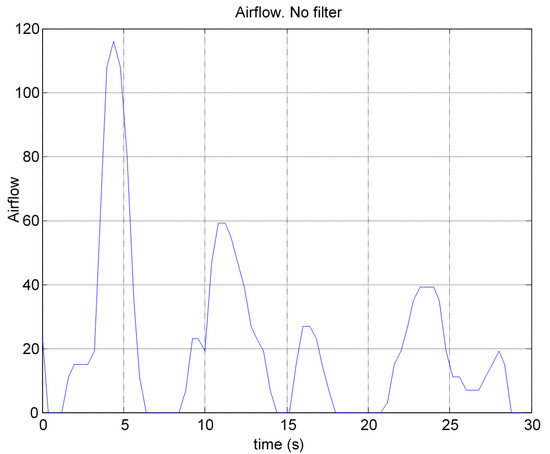 Airflow sensor tested; the user takes alternately a deep and a moderate breath. Filter type 1 was applied.