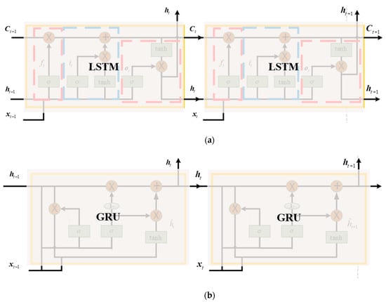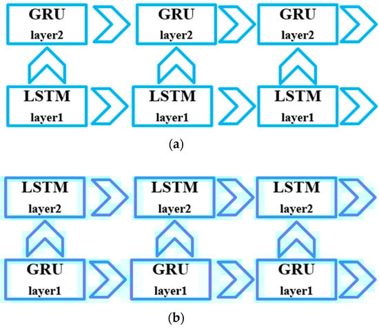 Structures of the mixed LSTM and GRU. (a) LSTM–GRU; (b) GRU–LSTM.