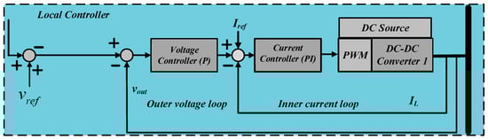 The primary responsibility of a local controller is to regulate the local current and voltage to meet the stability requirements and control operation. Inner and outer loop technique is used to perform this task. In the outer voltage loop, the PI controller is employed, and the output signal of PI is considered as a reference for the inner current loop, Iref, as shown in Figure 1.