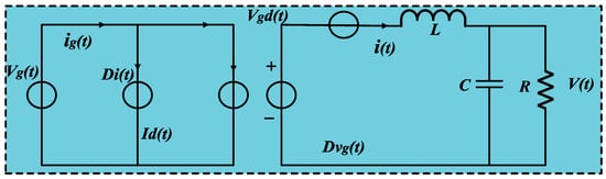 The small signal model of a DC–DC buck converter is shown in Figure 5, The two input signals are represented by and the two output signals are represented by In a buck converter, there are two DC working points: The state-space equation of DC–DC buck converter can be written as follows: