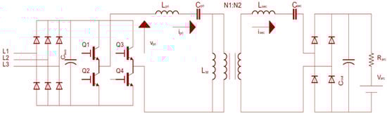 - Omar, M.F.; Seroji, M.N.; Hamzah, M.K. Analysis and simulation of three-phase AC/DC full-bridge current injection series resonant converter. In Proceedings of the 2010 IEEE Symposium on Industrial Electronics and Applications (ISIEA), Penang, Malaysia, 3–5 October 2010; pp. 159–164. [Google Scholar]
