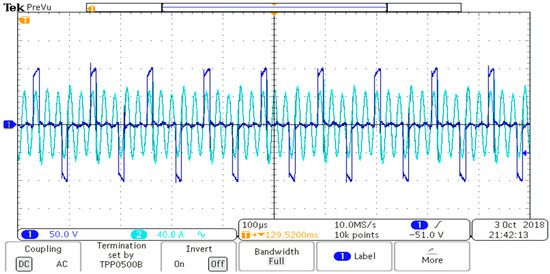 Figure 17 shows the output voltage of the bridge and primary resonant current waveforms when the converter is controlled by the harmonic current at full load. Soft switching is obvious at both turn-ons and turn-offs. The output voltage is constant at 30V ± 1V and the current is around 165 A.