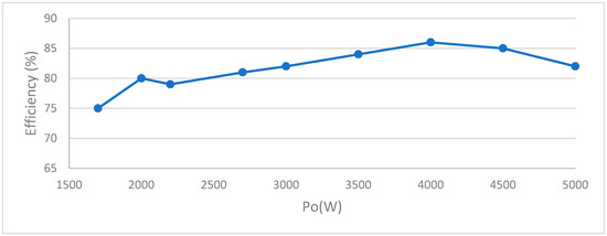 Experimental result of efficiency for output power between 1.7 kW and 5 kW.