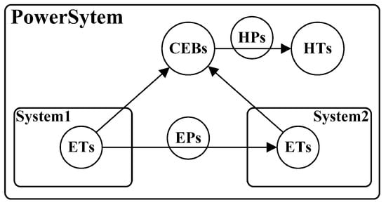 The formalization of an AADL model is divided into six parts including basic elements, error transitions (ETs), error propagations (EPs), composite error behaviors (CEBs), hazard propagations (HPs) and hazard transitions (HTs). Basic elements are constituent elements of other parts. The relationship between ETs, EPs, CEBs, HPs and HTs in an AADL model is shown in Figure 4. ETs are internal behaviors of components, System1 and System2. EPs are propagations between ETs of connected components (System1 and System2). CEBs are behaviors of a composite component, PowerSystem, whose state is affected by its subcomponents, two systems. ETs are also allowed to be established in a composite component. HTs are hazard behaviors of a component. HPs are the evolvement from CEBs or ETs to HTs.