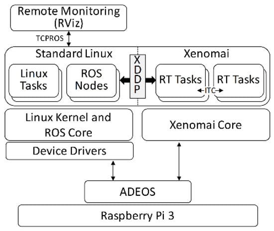 - Delgado, R.; You, B.-J.; Han, M.; Choi, B.W. Integration of ros and rt tasks using message pipe mechanism on xenomai for telepresence robot. Electron. Lett. 2019, 55, 127–128. [Google Scholar] [CrossRef]