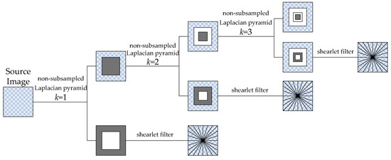 Multi-scale and multi-directional decomposition model of a three-level non-subsampled shearlet transform (NSST).