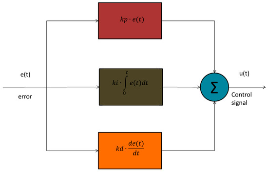 The block diagram of the PID controller is depicted in Figure 1. The input of the PID controller is the error , the error arises by the subtraction of the set point with the true value of . The aim of the PID controller is to produce the appropriate control signal in order to eliminate the error.
