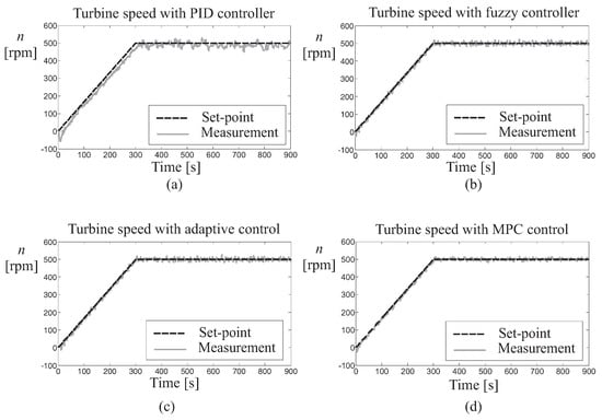 Hydroelectric system with (a) the self-tuning PID regulator, (b) the fuzzy controller, (c) the adaptive regulator, and (d) the MPC approach with disturbance decoupling.