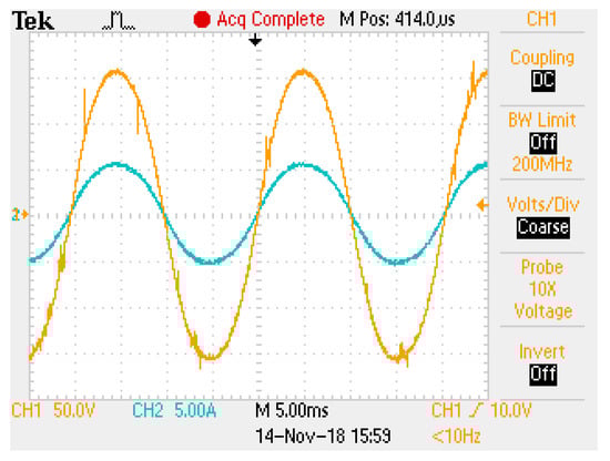 The corresponding experiments were also done. The IGBT, named K40T1202 IGBT, was used for each switch in the experiment. The experimental key waveforms are shown in Figure 9. Figure 10 shows the experimental results of output voltage and output current, which correspond with Figure 6. Similarly, Figure 11 shows the experimental results of the voltage of capacitors. The experimental output waveforms of half load changed to full load and full load changed to half load are shown in Figure 12. Furthermore, in order to verify that the proposed inverter can suppress the leakage current well, a capacitor with the value of 0.15 µF was used for CPV. Figure 13 shows the experimental waveform of the leakage current.