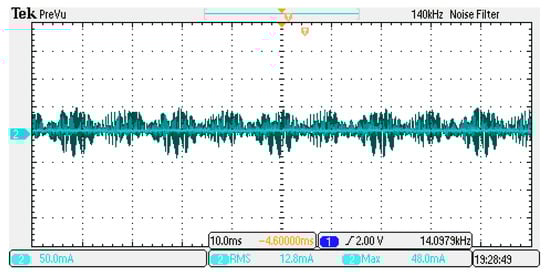 The waveform of leakage current (CH2: I (50 mA/div)).