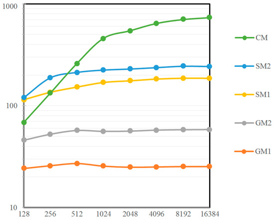 Inference on GPU: GM2, SM1, SM2 and CM implementations for a batch of 512 NNs with a {16, 32|16|8, 4} topology.