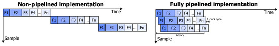 FPGAs enable very fast cycle times and massive throughput due to their programmable hardware nature with intrinsic parallelism and pipelining, as better detailed in Section 6. As their performance figures grow at a remarkable rate and good capabilities are available even for cost-sensitive devices, their current and potential application fields are widening [7,21,22,24,26,31].