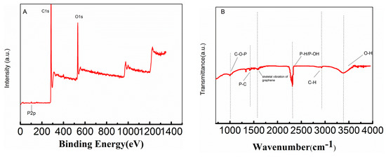 (A) XPS wide scan of P-PCG sample; (B) FT-IR pattern of P-PCG sample.