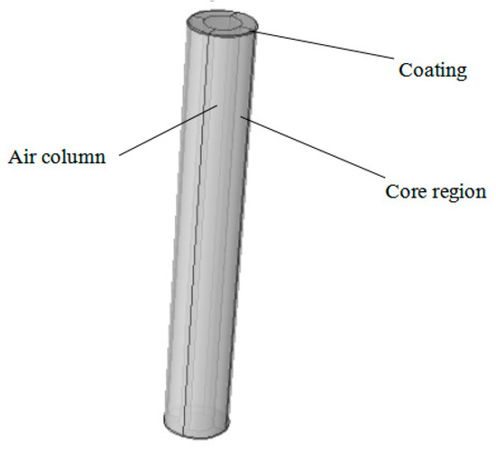 In order to further explore the P-PCG as electrode material of supercapacitor in practical application, a two-dimensional thermal model for commonly used coiling supercapacitor was studied in this research which consists of a core region, column of air and, coating [26,27]. The size of supercapacitor is 10 mm × 65 mm, as shown in Figure 9.
