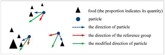 PSO, an artificial intelligence algorithm, was proposed by Kennedy and Eberhart in 1995 []. This algorithm is inspired by information transmission associated with the foraging behaviors of birds. The algorithm comprises two essential parameters, namely the particle best value (Pbest) and global best value (Gbest), which influence the particle’s direction and its search direction, respectively. Each bird is regarded as a particle, and any particle possesses the memory and experience generated during its own movement. A particle can learn to adjust its own movement according to its individual experience and memory. In PSO, several particles move simultaneously, and a specific particle compares its experience with the experience of other particles simultaneously to determine the local optimal solution. Because of the characteristics of PSO, particles can learn and memorize the evolution of swarms in addition to their own evolution, thus assisting them in searching for the best value. The schematic of the PSO search approach is shown in Figure 1.