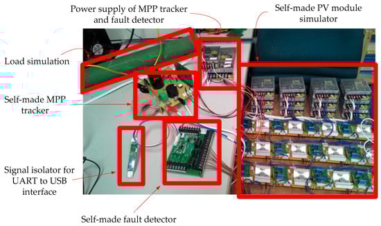 In addition, the proposed binary search-based method only needs basic computing rules such as addition and subtraction. Compared with the ENN presented in Reference [], MLP method presented in Reference [] and FNN proposed in Reference [], the learning and diagnosis response of the proposed binary search-based method is also faster under the same conditions. It is because more complex computing instructions such as exponential function are needed using the existing ENN, MLP and FNN methods. However, the proposed binary search-based fault detection method does not need a complex learning procedure, such that it can easily be implemented on a single-chip microcontroller. When the capacity of photovoltaic modules increases or reduces, no data should be modified to promote the diagnosis accuracy. Because the diagnosis scheme is simple, a PIC microcontroller can be utilized to implement the hardware for real-time fault diagnosis of a photovoltaic module array. There are a lot of analog and digital modules in the PIC microcontroller, so it makes the hardware circuit size very small and reduces cost.
