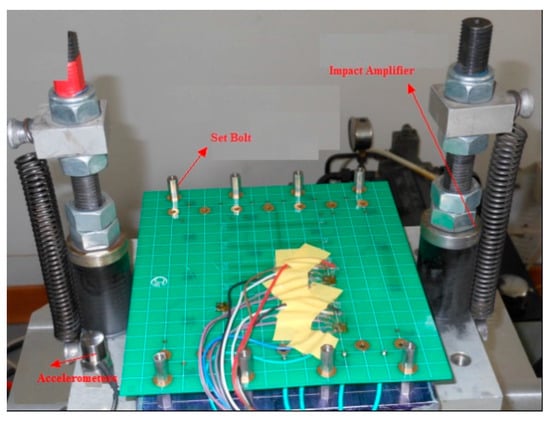 When installing the PCB during the test, it is important to ensure good welding of the signal line of the PCB and line hole of corresponding substrate to ensure good welding. Then, the transfer-base-table was fixed in the shock amplifier, the samples were fixed with hexagonal stainless steel bolt, and the sensor was tightened in amplifier to ensure firm without loose. Finally, signal and sensor lines were taped respectively on the table to prevent excessive force to cause damage or fracture in the process of shock, which is shown as Figure 3.