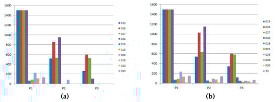 The monitored devices in the test are P1, P2, and P3, which are shown in Figure 1. Partial data of the maximum values of strain, the number of first transient failures and the number of first static failures for one board in the drop shock test are shown in Table 4. The comparison of the results are analyzed as Figure 6.