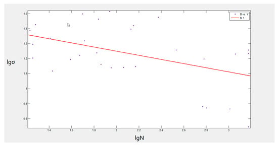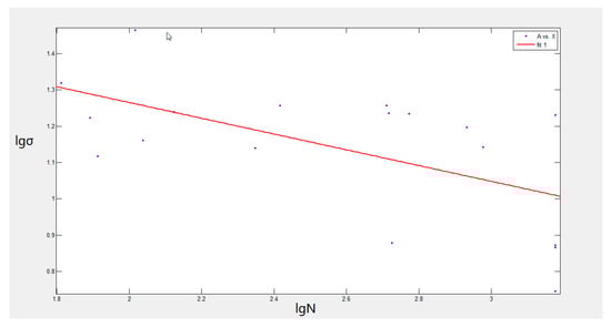 where, a and b can be obtained by least squares fitting using Matlab software, the data σmax and N are in Table 4, and the stress-transient failure life of the formula a = 1.7, b = −0.2173. Then the stress-transient failure life curve is shown as Figure 8. In the stress-static failure life formula, parameters a = 1.526, b = −0.1381 and the curve is shown as Figure 9.