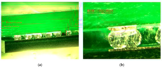 The main means of failure analysis include metallographic analysis, SEM and light microscopy. The study found that the common failure modes of the daisy-chain circuit were found to be the Intermetallic Compound (IMC) fracture on the one side of the PCB as shown in the Figure 14. The reason for this crack formation is that the surface damage is continuously diffused into the interior of the solder balls, causing local stress concentration to increase significantly and cause fracture. The figure shows a cross-sectional view of a sample of static failure solder joints under an optical microscope.