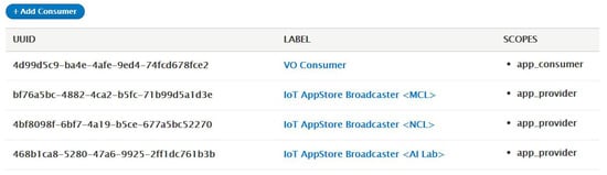 As discussed in the design considerations that virtual objects in the application store must be protected from unauthorized access. For this, the OAuth2 module has been utilized which enables effective authorization. In the OAuth2 system, one requirement is to register all clients who tend to interact with the system. The client is the application that would like to access the user’s account on the system, and upon registration, the client will be associated with a role and user on the system. The difference between users and clients is that clients can be machine or IoT gateways or even smart things. Some clients don’t need users, and they autonomously post contents without user intervention. When a client is registered on the system, it has been assigned with client unique user id (UUID) and secret code which can be used as mandatory parameters in OAuth access token grant request.
