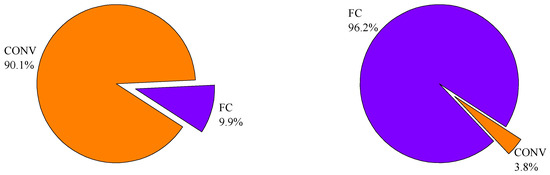 The essence of the convolutional layer is the feature extractor, while for the fully connected layer it is the classifier. The feature extractor extracts different features from input images, including lines, corners, circular arch, etc., which are relatively invariant to distortions or position shifting. Absolutely, the convolutional layer has a hungry-computation demand. The classifier is based on multi-layer perceptron (MLP). The function of the classifier is to integrate these different features from the feature extractor to decide the likelihood of categories that the input image may belong to. Conversely, the fully connected layer has a heavy-memory demand. In general, the convolutional layers take up less than 10% of the total network weights but occupy more than 90% of the computation time, while the fully connected layers take up more than 90% of the total network weights but occupy less than 10% of the computation time. Figure 2 illustrates the unbalanced demand for computation and memory of the AlexNet inference. AlexNet has 61 M weights and takes 1.45 GOPS to process a single 224 × 224 image. The CONV layers of AlexNet have 2 M weights and take 1.33 GOPS computation, while the FC layers of AlexNet occupy 59 M weights and take 0.12 GOPS computation.