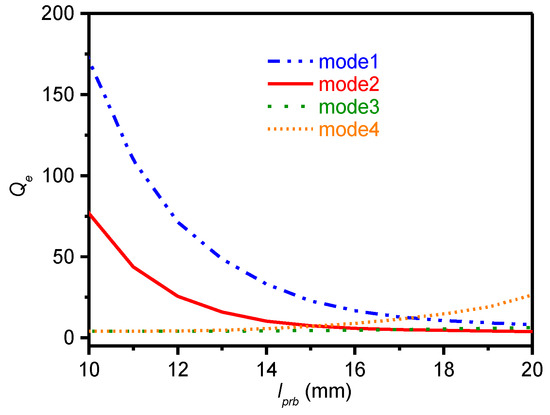 External quality factor Qe against varying lprb.