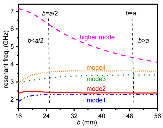 Resonant frequencies against height of the waveguide cavity b.