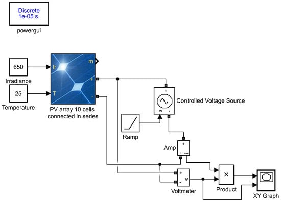 The Simulink simulation setup of the proposed SPC-FOCV method is shown in Figure 6. The accuracy of the simulation is defined by the sample time of 1 × 10−8 s. The simulated circuit consists of PV array with nine cells connected in series and additional series connected semi-pilot cell. This PV array feeds the load through Buck-Boost DC-DC converter. All cells have similar parameters which are detailed in Table 2. In this example, temperature of all cells is 25 °C and irradiance is W/m2.