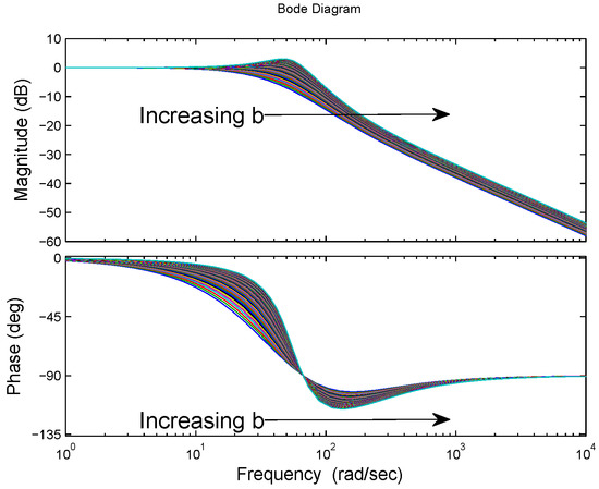 When , is an overdamped system and the flat part of the magnitude curve will be narrow, in contravention of the “flat-magnitude” expectation. When is small, the resonance peak will be high, again in contravention of the “flat-magnitude” expectation. For a second-order system, a around 0.5 generally leads to a “flat” property, which is also a trade-off between the resonance peak and .
