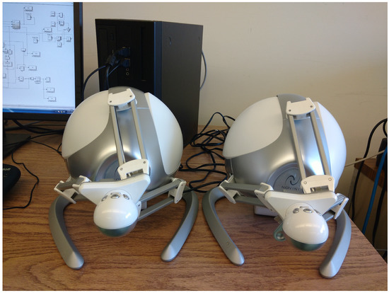 Figure 13. The human operator commanded the master, Novint Falcon, to control the position of the slave, Novint Falcon.